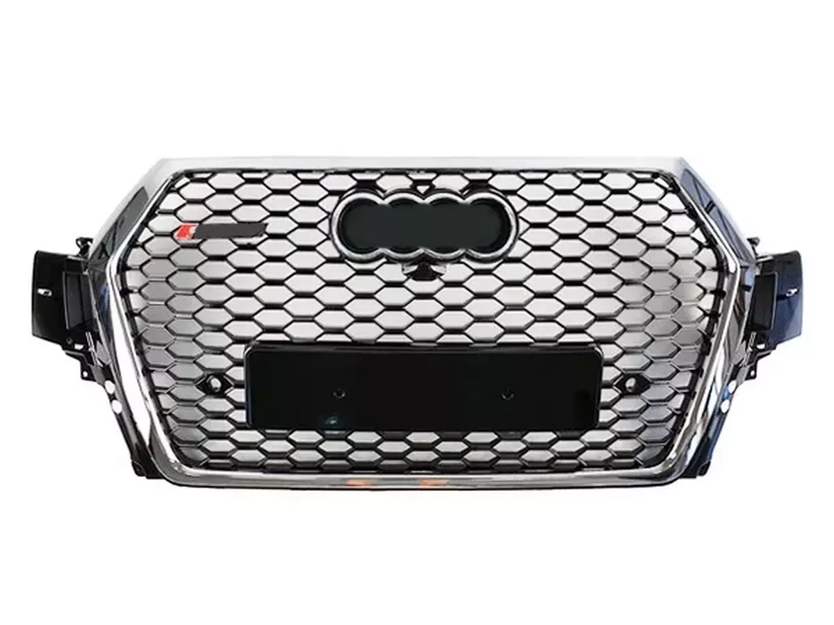 - Хромована радіаторна решітка з чорною внутрішньою сіткою дизайном в стилі RSQ7 модельна і розроблена конкретно для Audi Q7 II (4M; 2016-2020) до рестайлінгу.