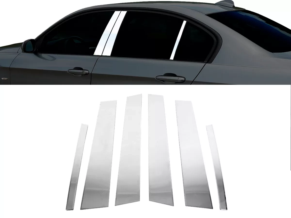 - Хромовані накладки встановлюються на вертикальні молдинги дверних стійок BMW 3 Series E90 (2005-2012).
