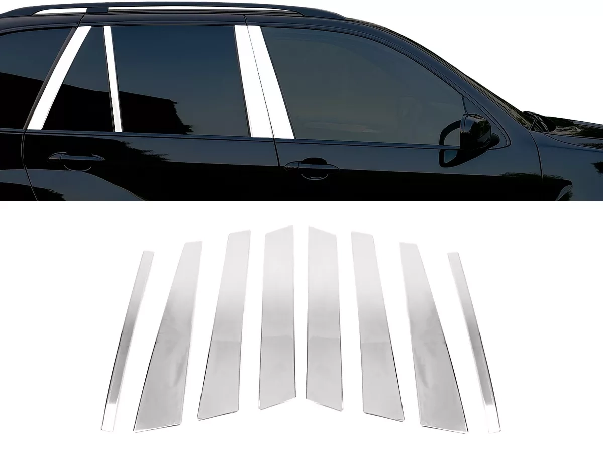 - Хромовані накладки встановлюються на вертикальні молдинги дверних стійок BMW X5 E53 (2000-2006).