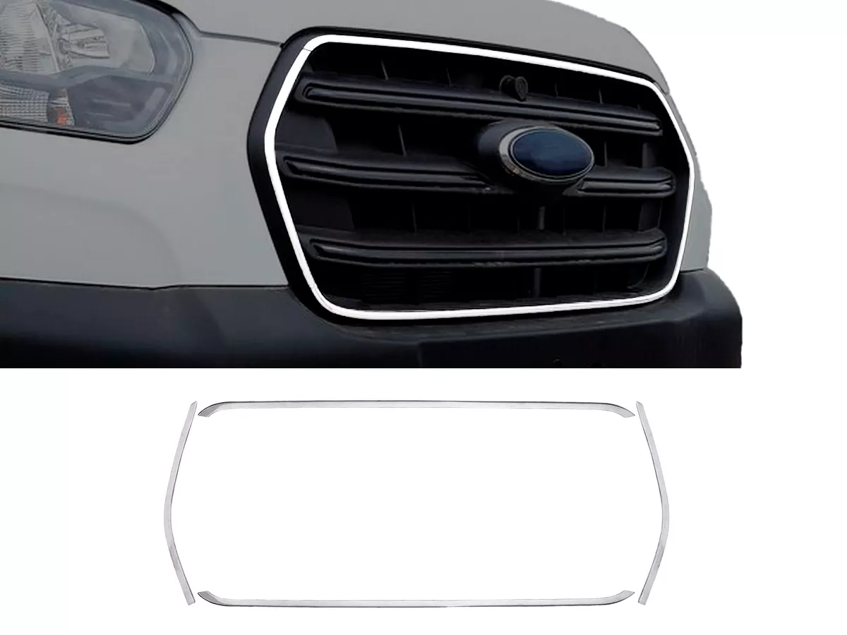 - Хромоване обведення Omsa Line навколо решітки радіатора Ford Transit IV (Mk9) (2020+) після рестайлінгу.
