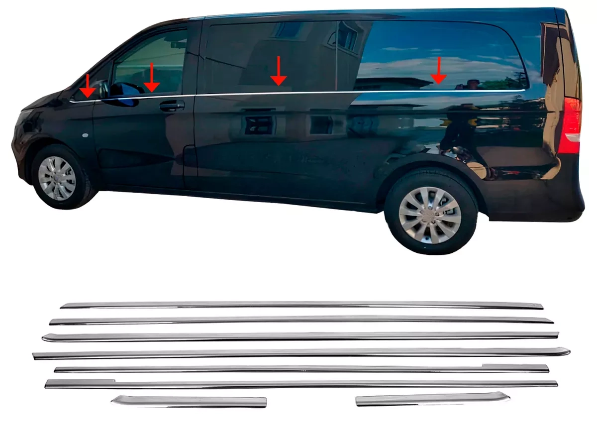- Хром накладки на нижні молдинги вікон по всій довжині Mercedes Vito III / V-Class W447 (2014+) 1 бічні двері.