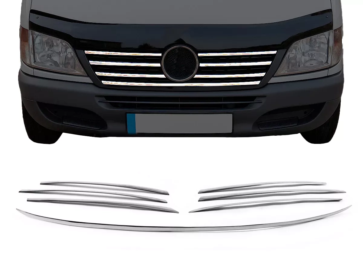 - 7 шт хромовані накладки модельні та встановлюються на решітку радіатора Mercedes Sprinter W901/902/903/904/905 (2000-2002).