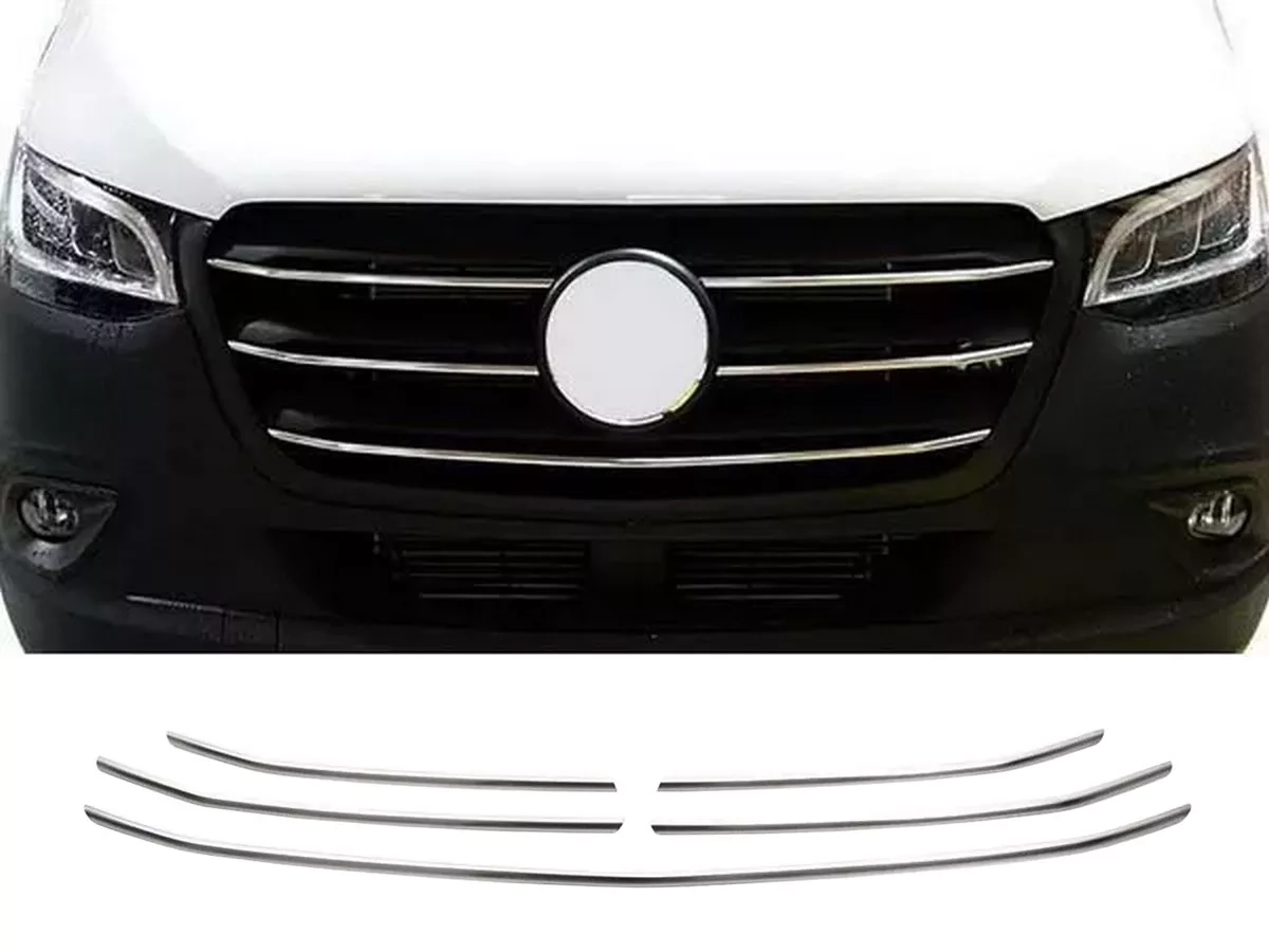 - Вузьку хромовані накладки Omsa Line встановлюються на решітку радіатора Mercedes Sprinter W907 (2019+).