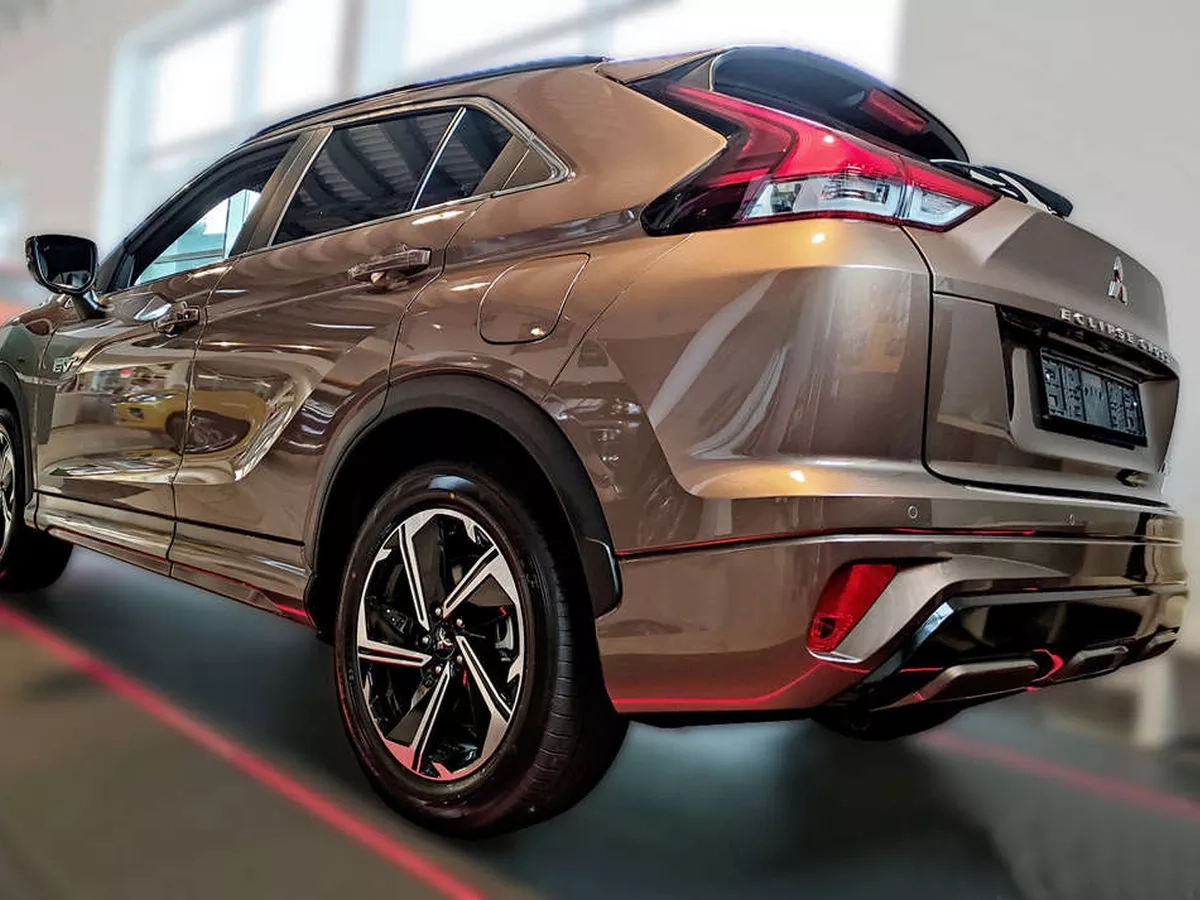 Срібна захисна накладка із загином та ребрами Avisa модельна та призначена на задній бампер Mitsubishi Eclipse Cross PHEV (2021+) після рестайлінгу.