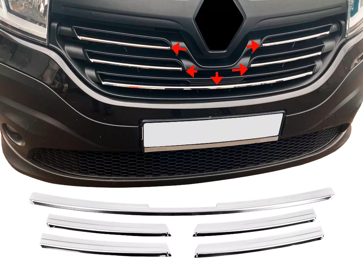 - Хромовані накладки Carmos на решітку радіатора призначені для Renault Trafic III (2014-2019).