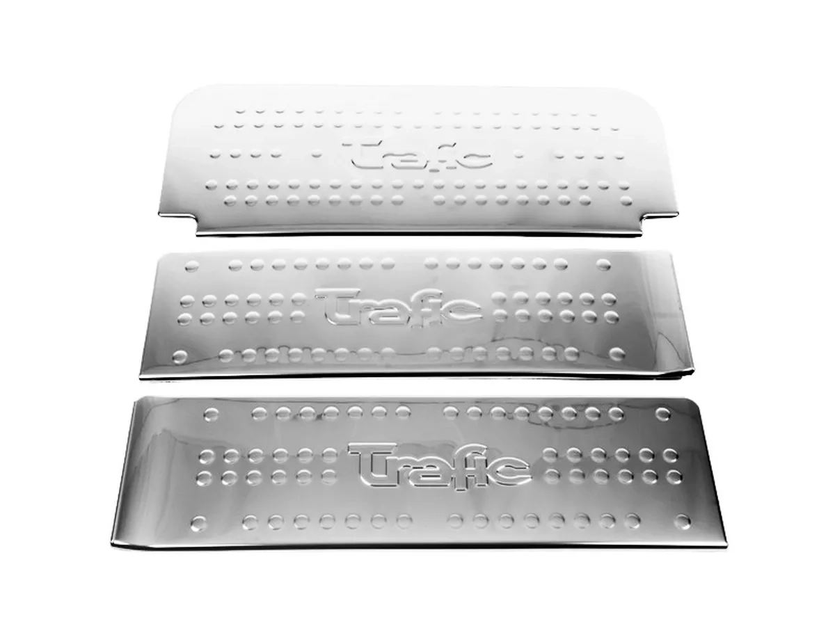 - 3 шт широкі накладки Omsa на пластикові внутрішні пороги Renault Trafic II (2001-2014).