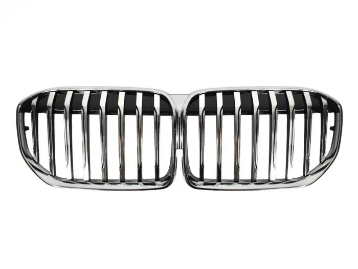 - Хромированная решетка радиатора (ноздри) с одинарными ребрами для BMW 7 Series G11/G12 LCI (2019-2022) после рестайлинга.