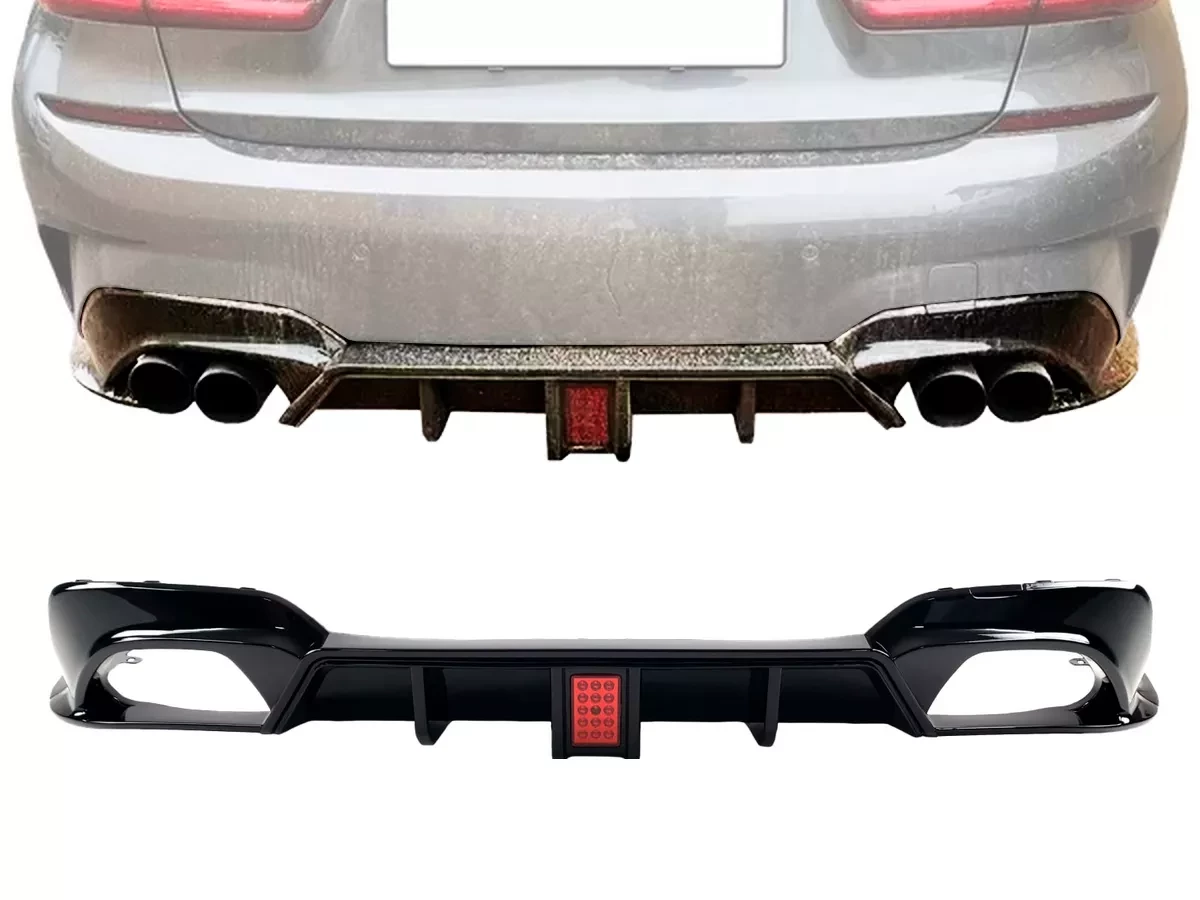 - Диффузор в стиле M-Competition со стоп-сигналом разработан и изготовлен на задний бампер BMW 3 Series G20 (2018-2022) Sedan до рестайлинга.
