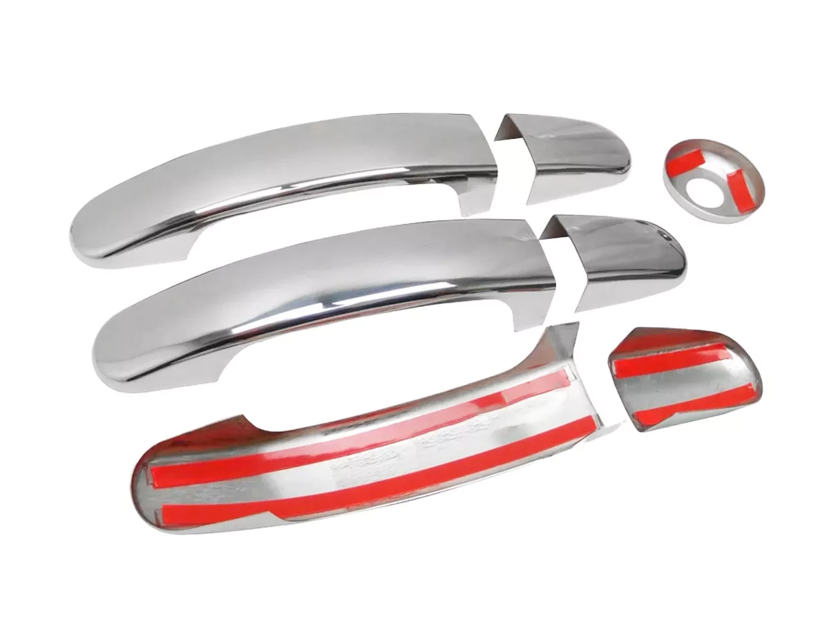 - Просто очистите монтажную поверхность и наклейте хром накладки на ручки.