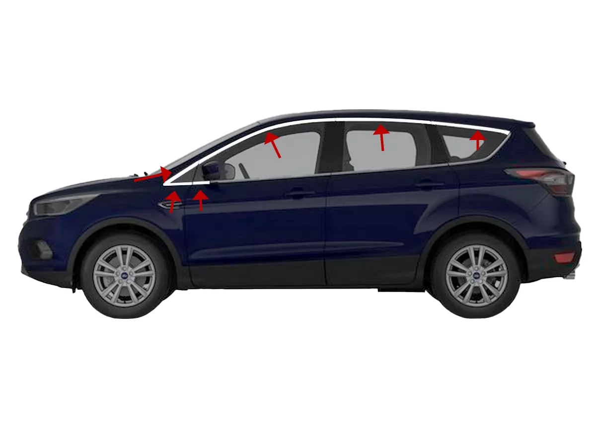 - Хром верхние молдинги окон Omsa Line накладываются на уплотнители стекла Ford Kuga II (C520; 2013–2019).