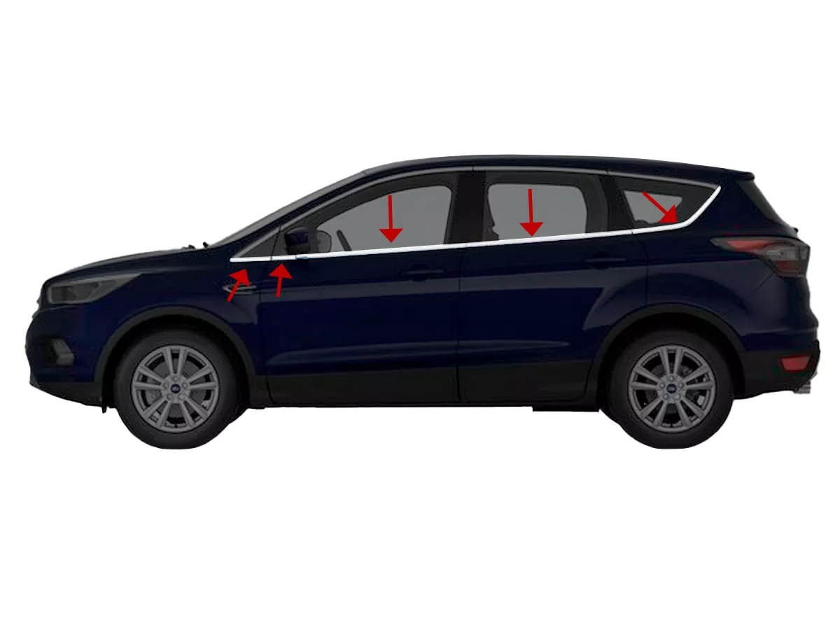 - Хром нижние молдинги окон Omsa Line накладываются на уплотнители стекла Ford Kuga II (C520; 2013–2019).