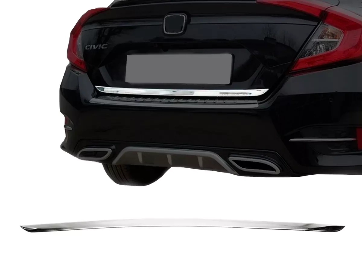 - Хромированная накладка Carmos на нижнюю кромку крышки багажника Honda Civic X (FC5; 2016-2021) Sedan.