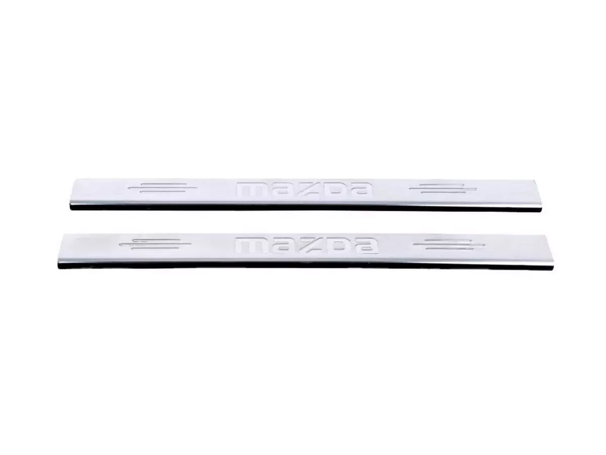 - 2 штуки защитные накладки с загибом модельные и предназначены конкретно на дверные пороги Mazda 3 (BK; 2003-2008).