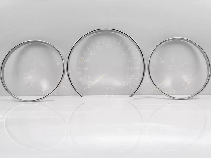 - Кольца в щитке приборов Mercedes C-Class W202 (1997-2001) после рестайлинга.