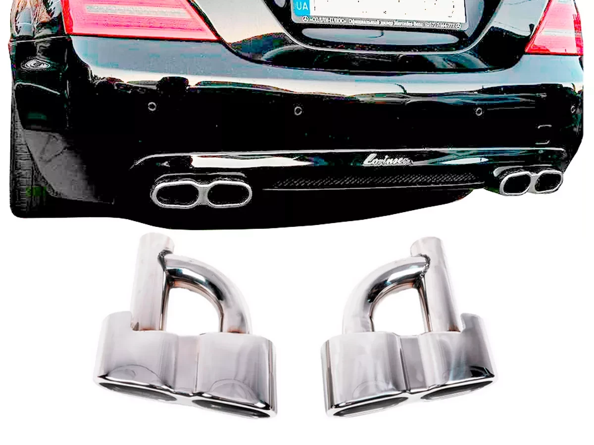 • Двойные насадки на два выхлопа S65 AMG стиль для глушителя Mercedes S-Class W221 (2005-2013).