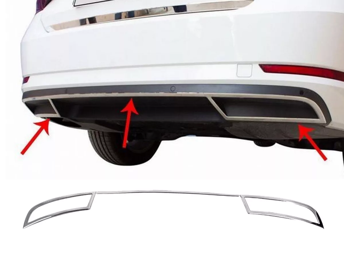 - Хром накладки Carmos на диффузор заднего бампера Skoda Superb III (3V; 2015-2024) Liftback.