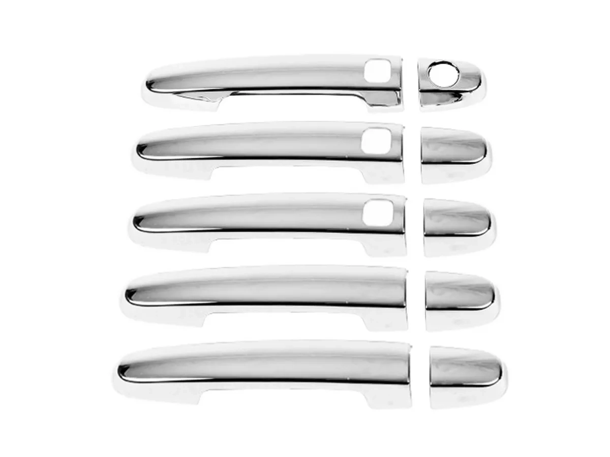 - Хром накладки Carmos на дверные ручки с кнопками Toyota Rav4 III (XA30; 2006-2012).