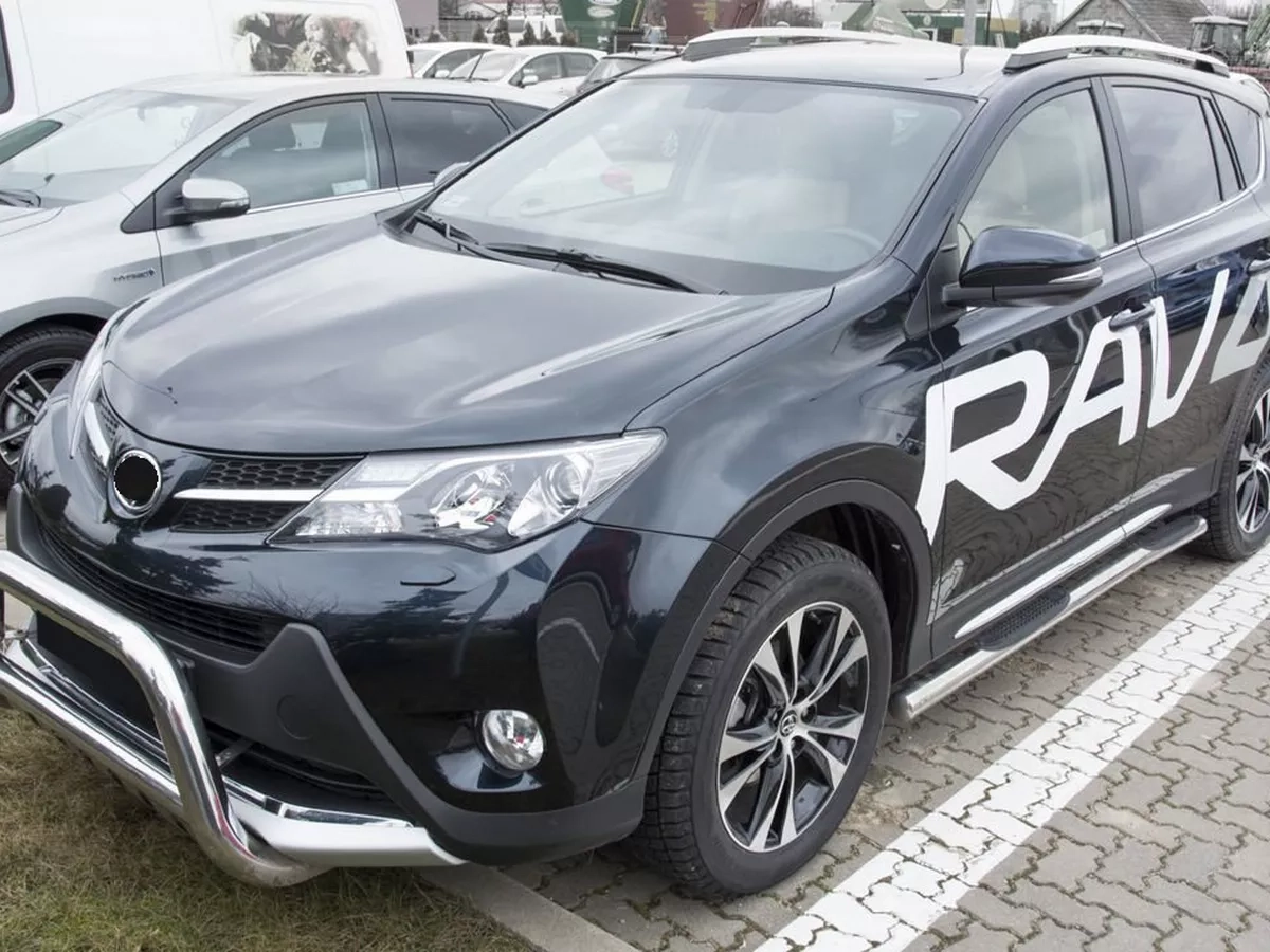 Стальная защитная накладка с загибом и рёбрами Avisa разработана специально на задний бампер Toyota Rav4 IV (XA40; 2013-04.2015).