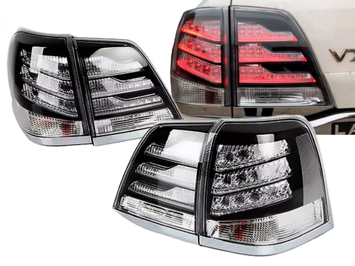 • Задние черные LED фонари в стиле Lexus 2012 для Toyota Land Cruiser 200 (2007–2015).