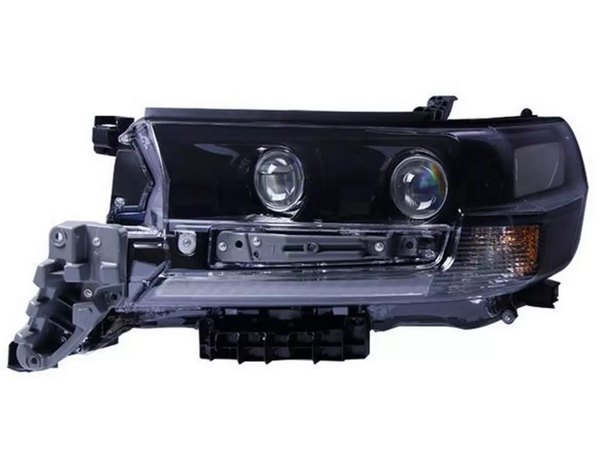 - Чёрные LED линзовые фары с DRL для Toyota Land Cruiser 200 (2016-2021)