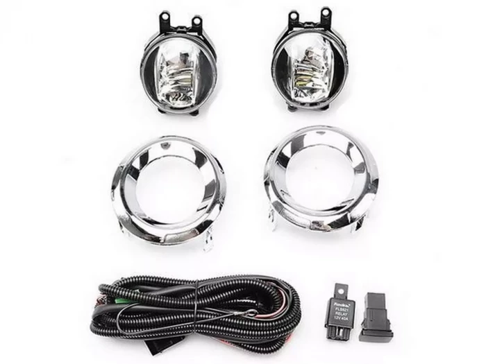 Светодиодные противотуманки с хром рамками в передний бампер Toyota Land Cruiser J150 Prado IV (2014-2017).