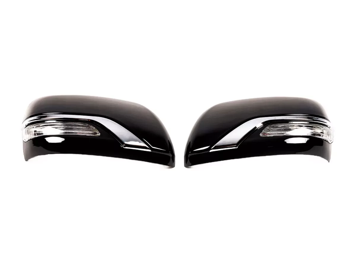• Черные крышки с повторителями поворота на зеркала заднего вида Toyota Land Cruiser J150 Prado IV (2009-2023).