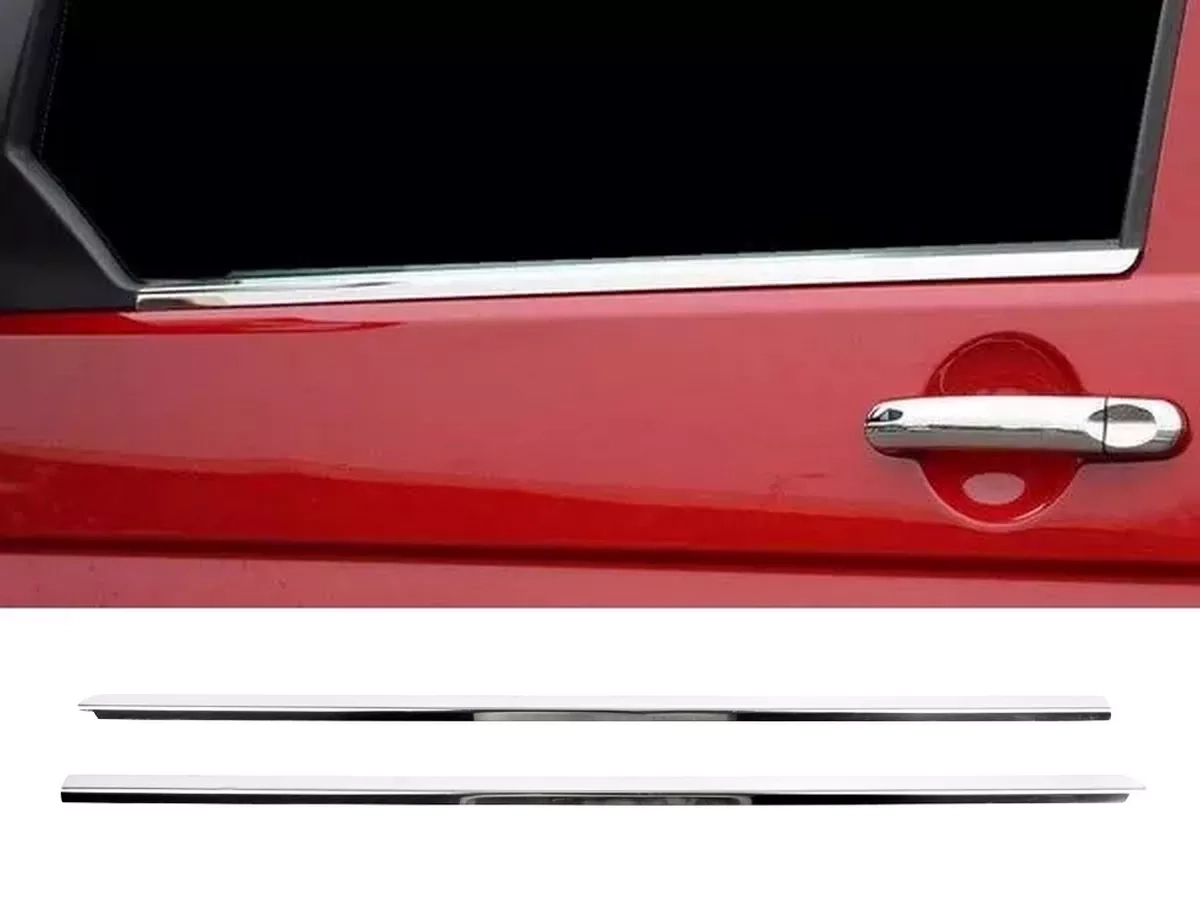 - Хром нижние молдинги окон Carmos накладываются на уплотнители стекла передней двери Volkswagen T5/T5+ Transporter/Multivan/Caravelle (2003-2015).