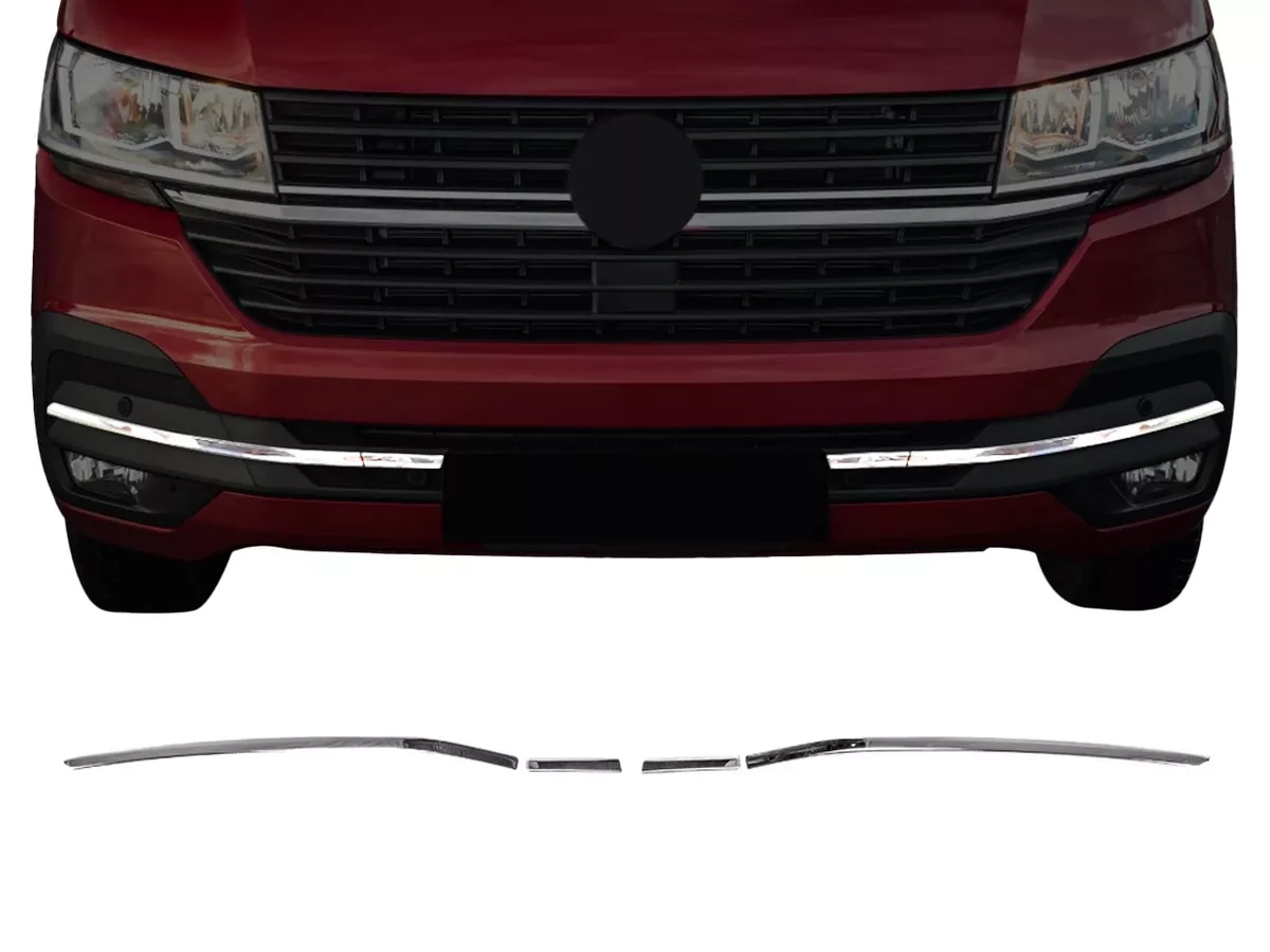 - Хром накладки на нижнюю полосу переднего бампера VW T6.1 Transporter/Caravelle/Multivan (2019-2023) после рестайлинга.