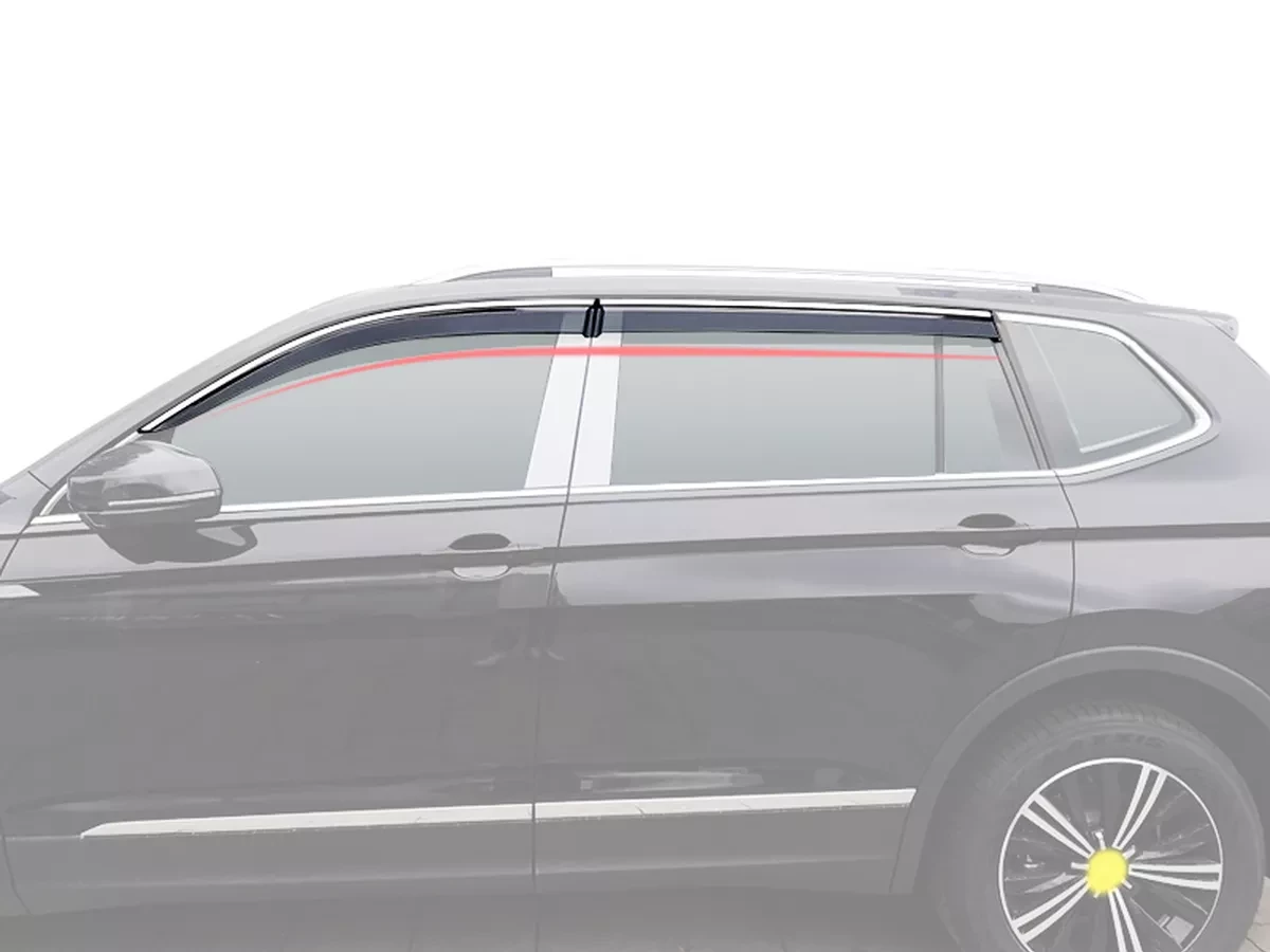 - Ветровики (дефлекторы окон) Hawk с хромом молдингом для Volkswagen Tiguan II (AD/BW; 2016-2023) SWB.