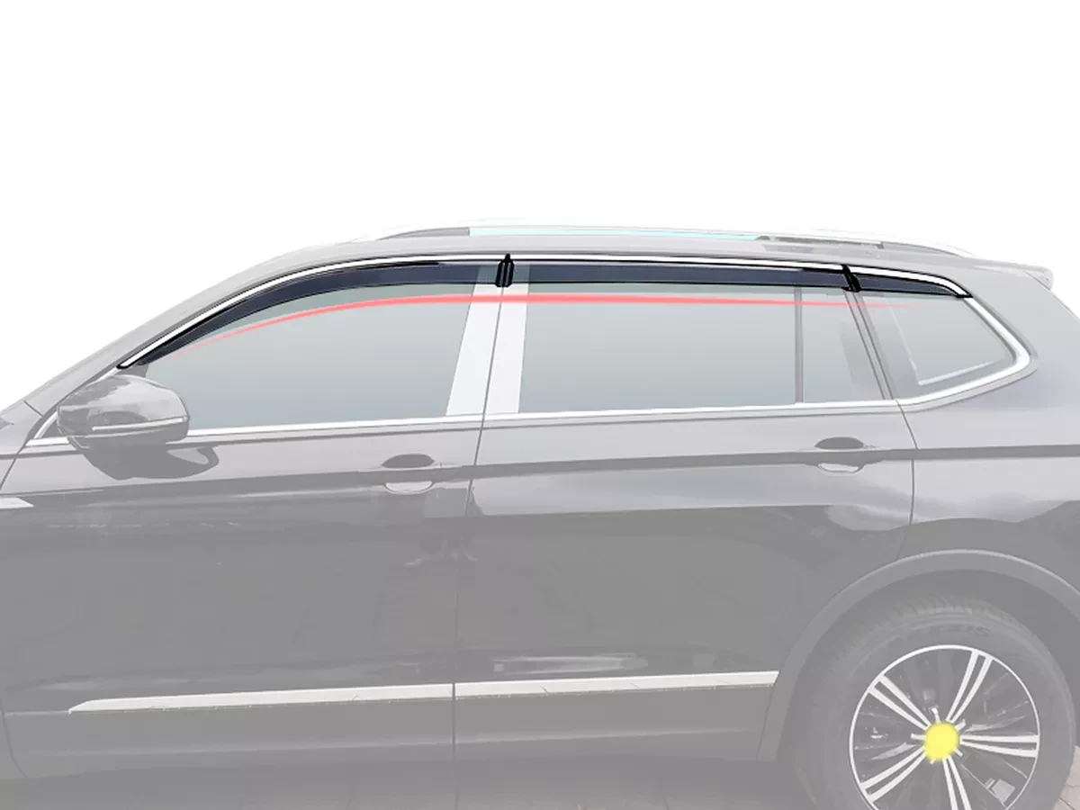 - 6 шт. ветровики (дефлекторы окон) Hawk с хромом молдингом для Volkswagen Tiguan Allspace / USA (AD/BW; 2017-2023) LWB.