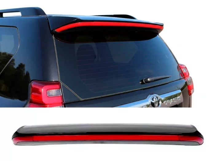 - Чорний спойлер зі стоп-сигналом над склом задніх дверей Toyota Land Cruiser 150 Prado IV (2009-2023).