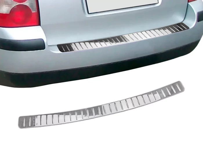 - Глянцева захисна накладка без загину Omsa розроблена та виготовлена відповідно до розмірів оригінального заднього бампера Volkswagen Passat B5 (3B/3BG; 1996-2005) Універсал, Седан.