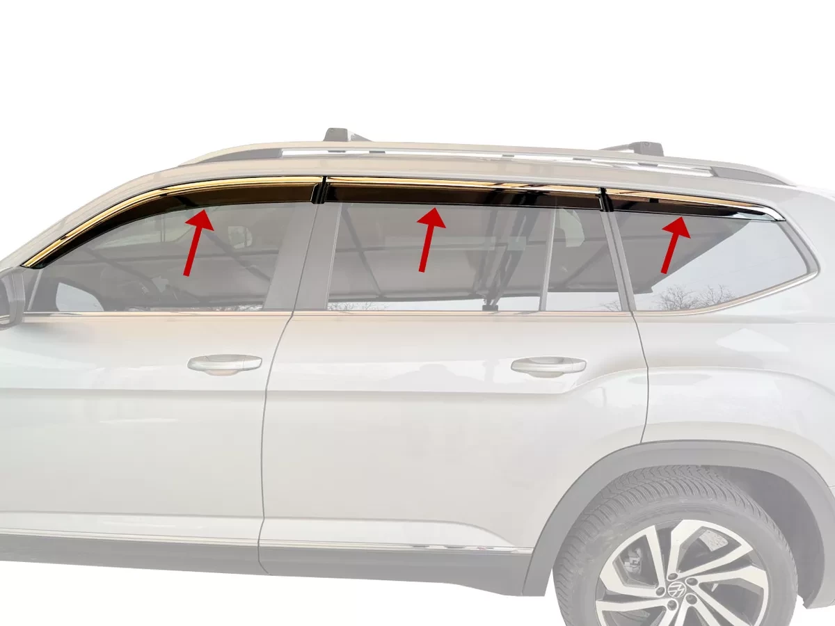 • 6 шт. вітровики (дефлектори вікон) Hawk із хромом молдингом для Volkswagen Atlas / Teramont (2016+).
